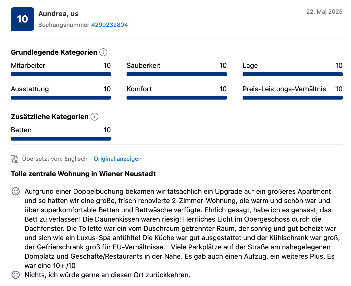 Sowohl auf Airbnb, als auch booking.com konnten wir bereits Auszeichnungen für die Zufriedenheit unserer Gäste erreichen.