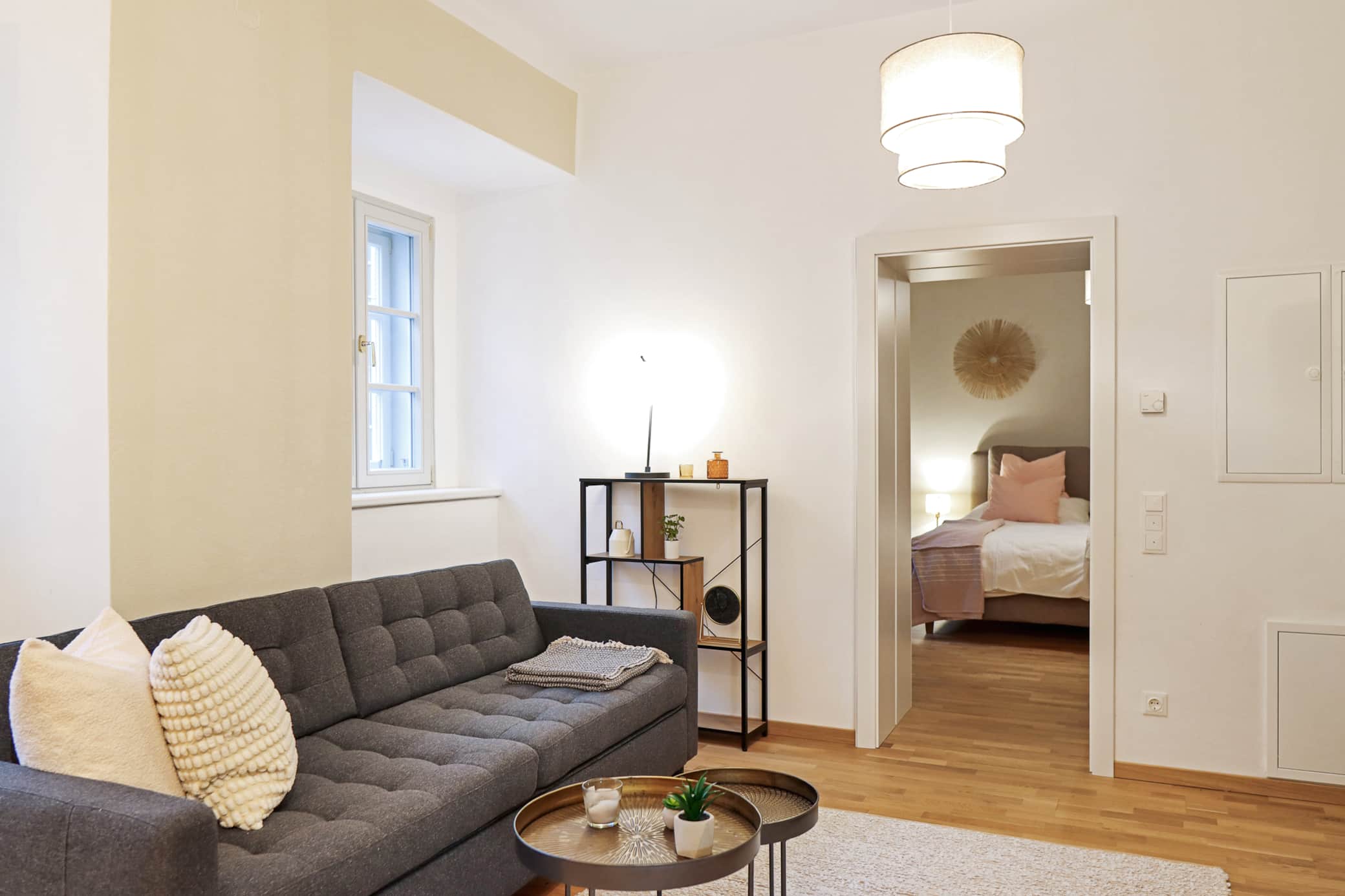 Willkommen in unserer modernen Altbauwohnung im Zentrum von Wiener Neustadt, nur wenige Gehminuten entfernt vom Dom, der charmanten Altstadt, dem Landesklinikum und dem City Campus der Fachhochschule. Die Unterkunft überzeugt durch ihren Altbaucharme, die stilvolle Einrichtung und der selbständige Check-in macht deinen Aufenthalt besonders angenehm. Diese zwei Zimmer Wohnung ist ideal für 2 Personen, eine hochwertige Ausziehcouch (2m x 1,4m) bietet jedoch auch Platz für bis zu 4 Gäste.